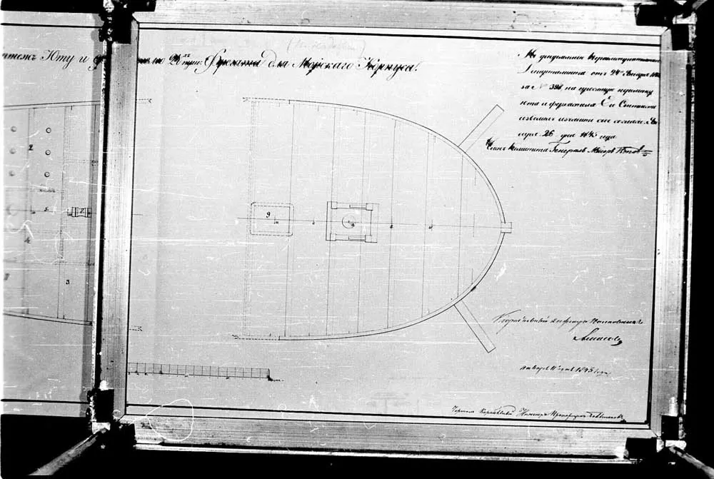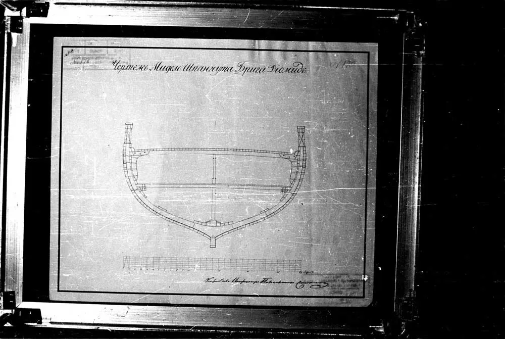 Чертеж вооружения 20-ти пушечного брига "Диомид". 1833 год. |  Чертеж вооружения 20-ти пушечного брига "Диомид". 1833 год. |  Чертеж барказа 10-ти весельного, построенного для брига "Диомид". |