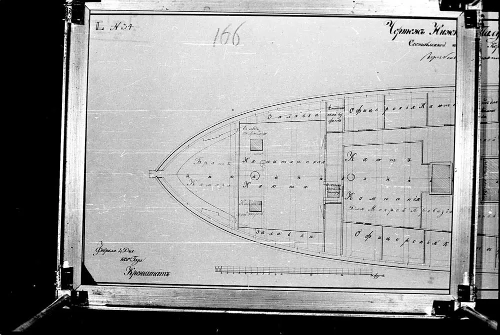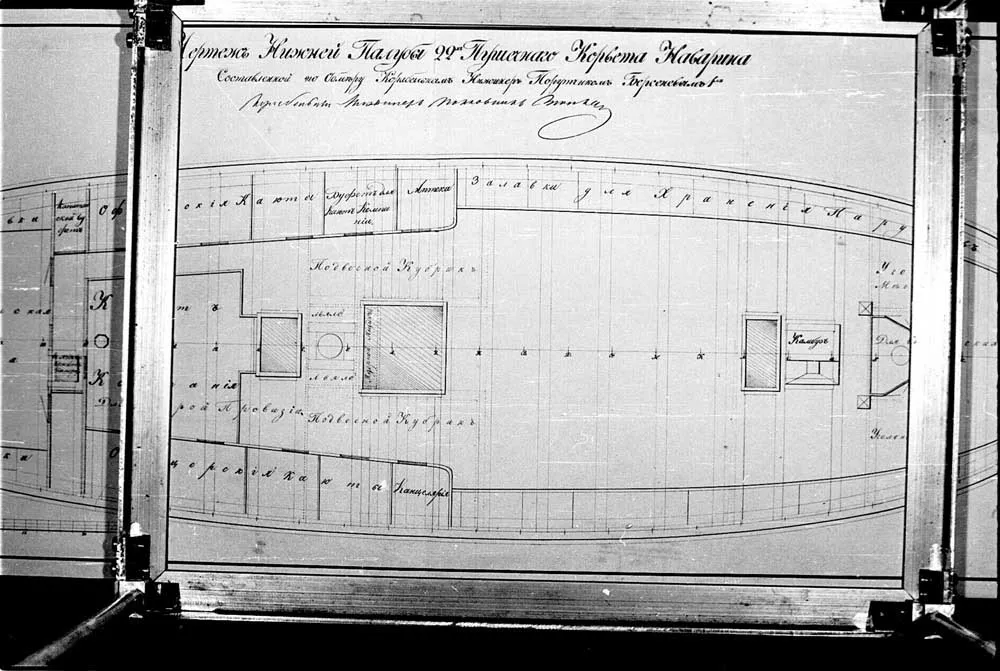 Чертеж нижней палубы 22-х пушечного корвета Наварина. 1831 год. |  Чертеж нижней палубы 22-х пушечного корвета Наварина. 1831 год. |