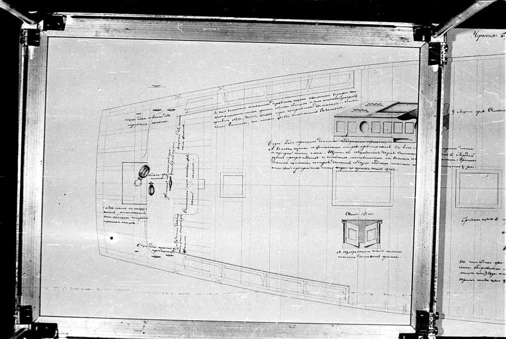 Чертеж верхней палубы яхты "Арандель" |  Чертеж 22-х пушечного корвета Наварина |  Чертеж 22-х пушечного корвета Наварина |