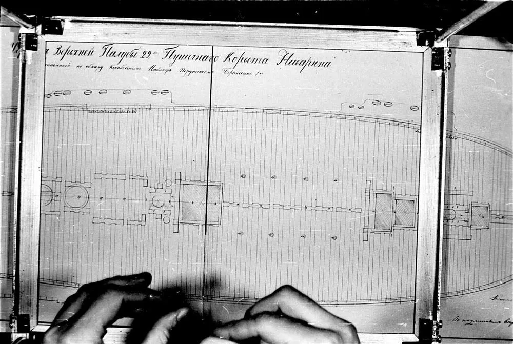 Чертеж внутреннего расположения 22-х пушечного корвета Наварина. 1831 год. |  Чертеж верхней палубы 22-х пушечного корвета Наварина |  Чертеж верхней палубы 22-х пушечного корвета Наварина |
