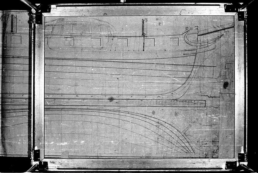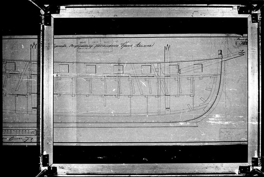 Продолный вид русленей 24-х пушечного корвета Наварина и 44-х пушечного фрегата Константина. |  Чертеж внутреннего расположения 22-х пушечного корвета Наварина. 1831 год. |  Чертеж внутреннего расположения 22-х пушечного корвета Наварина. 1831 год. |