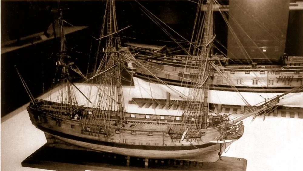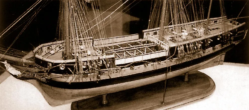 Британский 22-х пушечный шлюп, около 1800 года. Масштаб 1:48, длина 990 мм, высота 810 мм, ширина 560 мм. Эта модель была получена из музея Питерборо, Англия и числилась там как HMS Penquin, захваченный в 1815 году в Индийском океане капитаном американского корабля USS Hornet Джеймсом Биддлом (James Biddle). |