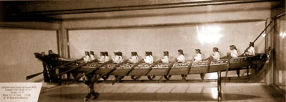 Английский баркас конца семнадцатого столетия, приблизительно 1672 год. Масштаб 1:24, длина 660 мм, высота 140 мм. |